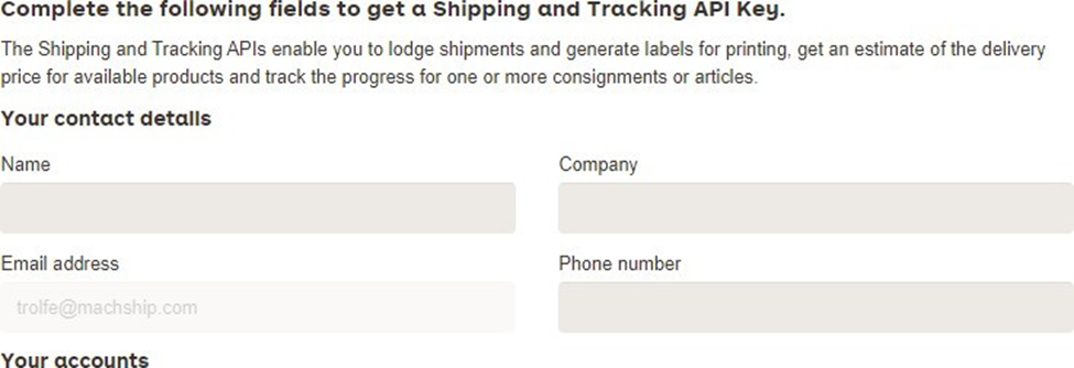 Once done with the registration, StarTrack will send you an email containing the Shipping and Tracking API Username and Shipping and Tracking API Password.