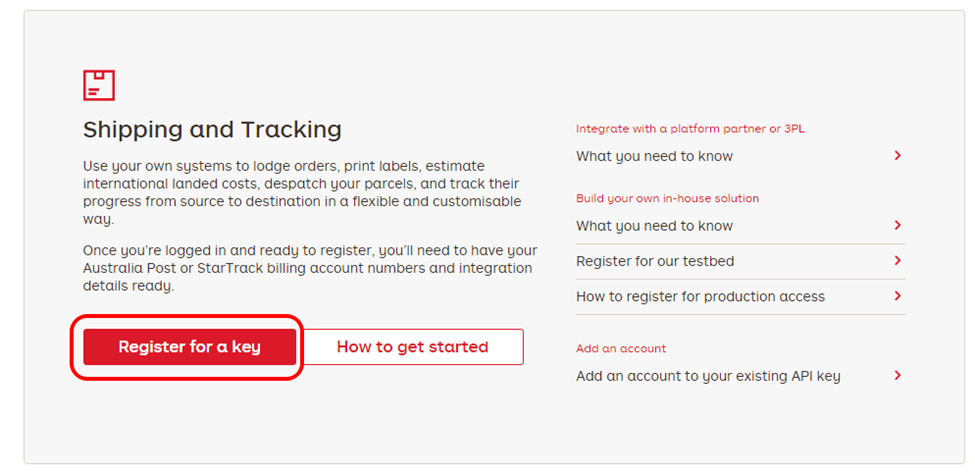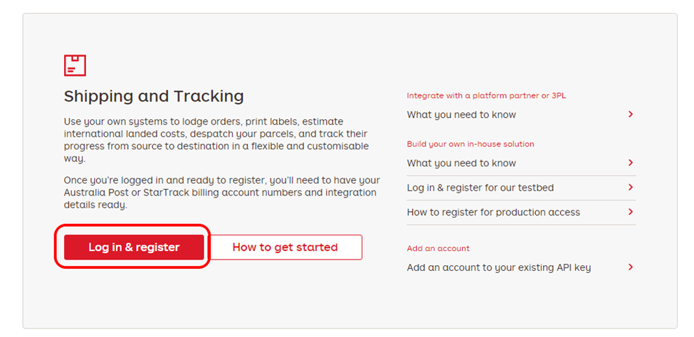 When looking to set up a new account with StarTrack, the first thing you will need to do is to create a user for the Aus Post developer centre.