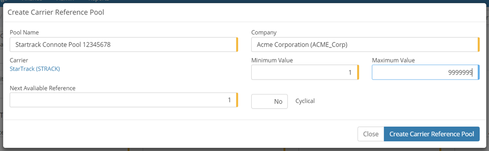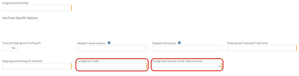 For this integration, Startrack will be setting the consignment number. As such there will be no fields for the Consignment Prefix and Connote Reference Pool.