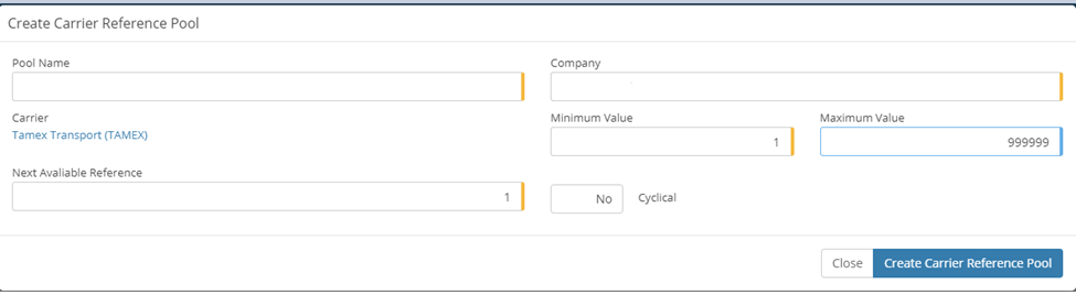Reference Pools - Reference pools are utilised by MachShip in order to maintain a count on connote, manifest and item numbers. The reference pool will ensure that each of those numbers is unique to what we have sent to the carrier previously. More information can be obtained on reference pools here. Tamex Transport requires the creation of just 1 reference pool, for the Connote number.