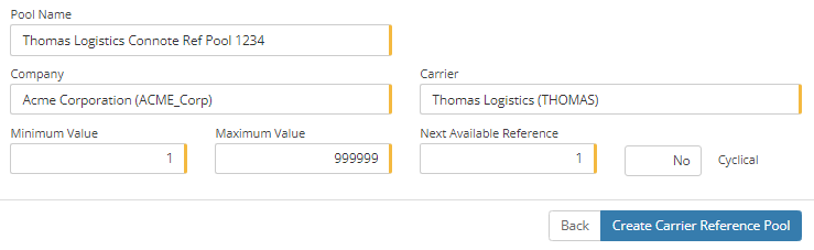 Reference Pools - Reference pools are utilised by MachShip in order to maintain a count on connotes, manifests, and item numbers. The reference pool will ensure that each of those numbers is unique to what we have sent to the carrier previously. More information can be obtained on reference pools here. Thomas Logistics requires the creation of just 1 reference pool, for the Connote number.