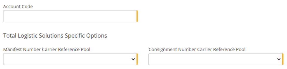 Pool Name - Set one as "Total Logistics Solution Manifest Pool <Account Code>" and one as Total Logistics Solution Consignment Pool <Account Code>