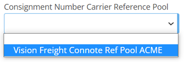 Reference Pools - Reference pools are utilised by MachShip in order to maintain a count on connotes, manifests and item numbers. The reference pool will ensure that each of those numbers is unique to what we have sent to the carrier previously. More information can be obtained on reference pools here. Vision Freight requires the creation of just 1 reference pool, for the Connote number.
