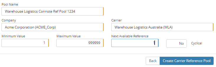 Pool Name - Set as Warehouse Logistics Connote Ref Pool <Account Code>