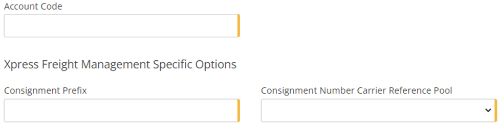 Once the Xpress Freight Management team responds then we need to fill out the specific options. These are: