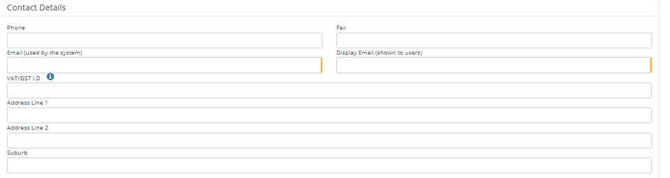 - VAT/GST I.D, Address line 1, Address Line 2, Suburb: (Only Required if Invoicing) - The VAT / GST I.D, Address Line 1 and Address Line 2 fields are free text fields which are used by MachShip in order to populate the invoice which is generated out of the system. The suburb field needs to match a suburb from the MachShip database. When you begin to type either a suburb or a postcode you will see that MachShip will present a list of the possible values. Select the one which is correct.