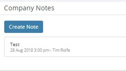 Users can fill out the text box and select if the note is to be visible to a client or not. Once you select Create Note the note will appear and have the user and created time and date set against it.