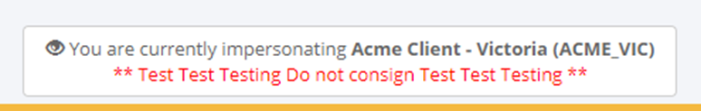 - Impersonation Message - Impersonation in MachShip is where a user assigned to a parent company can impersonate or take on acting as one of their child companies. If it was important to make you wider organization aware of something - for example if an account is to not have freight booked on it - then utilize the impersonation message. This message will appear in the bottom left-hand corner of the screen and is not visible to the client.