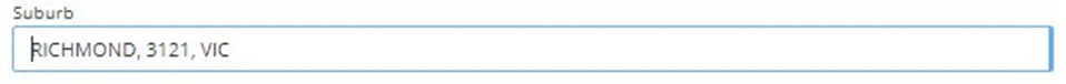 The suburb field will store the delivery or pickup suburb for the saved location. In order to validate that address data being provided, MachShip has a pre-set list of 16,000+ suburbs based on the Australia Post suburb listing. Once you begin to type either a postcode or a suburb name MachShip will return the top 10 most relevant locations. Select the correct one and it will appear in the text box.