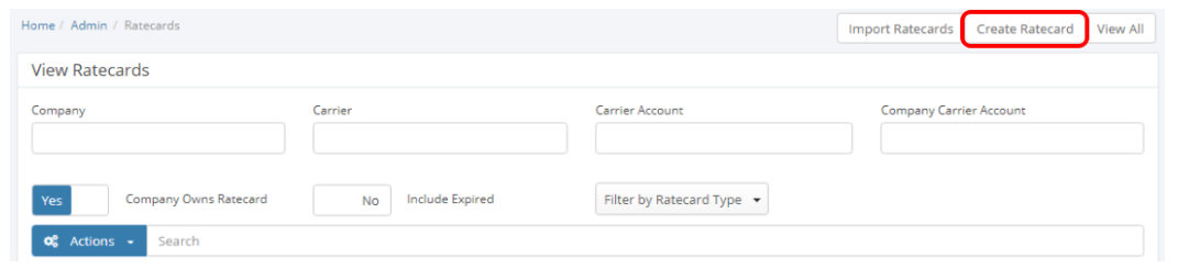Select Create Ratecard, located in the top left corner of the screen. This will prompt the Create Ratecard screen.