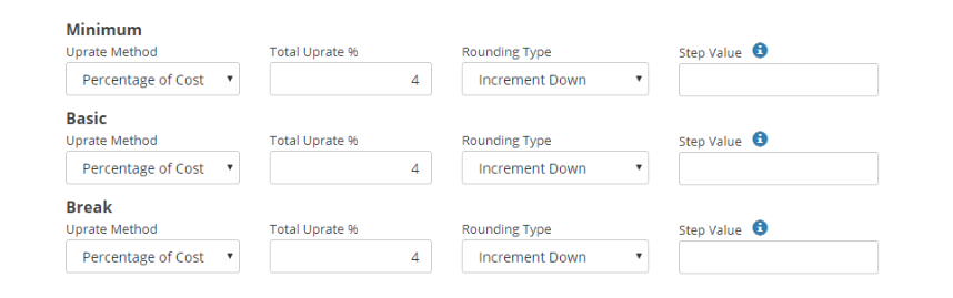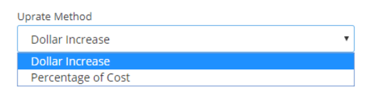 The uprate method will be either Percentage of Cost (% increase/decrease) or Dollar Increase.