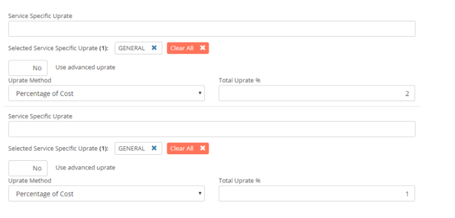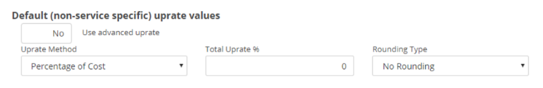 Once all details have been supplied for the Service Specific Uprate. It is required that you provide MachShip with an uprate figure for the remaining services. This will be completed through the Default (non-service specific) uprate values section.