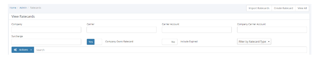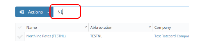 2. Locate the required rate card using either the Filter function or Search Bar.