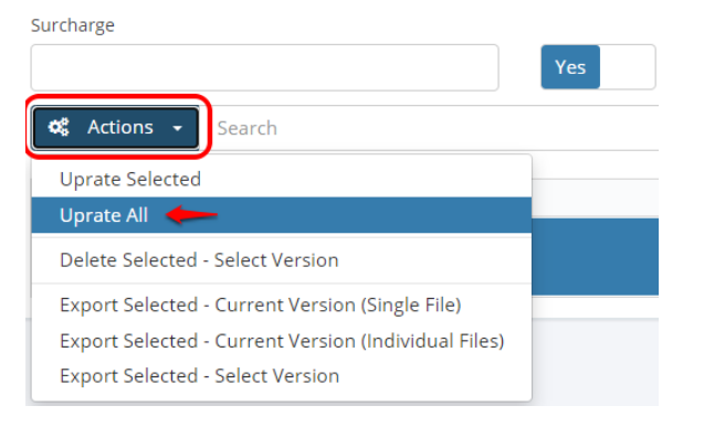 The final check to ensure that the uprate has been completed correctly is to export out the Ratecard Versions that have been created.