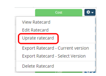 The Uprate Ratecards modal will show the names of all the ratecards that will be uprated. Please ensure this is correct.