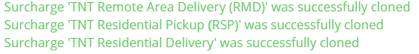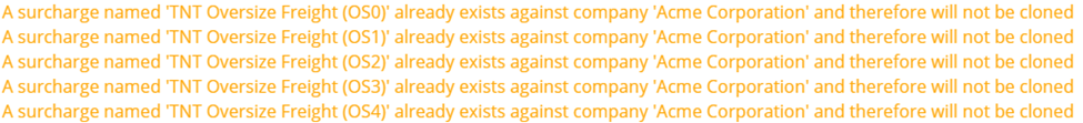 If the surcharge already exists against the company you are adding surcharges to, MachShip will not duplicate the surcharge, instead notify you that it will not be cloned.
