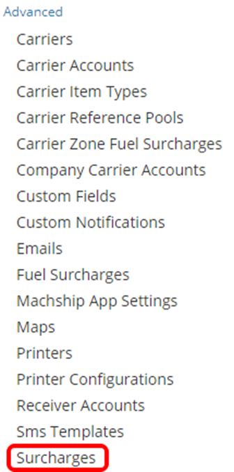 The linking of a surcharge will advise MachShip which company, carrier, service or account to apply the surcharge.