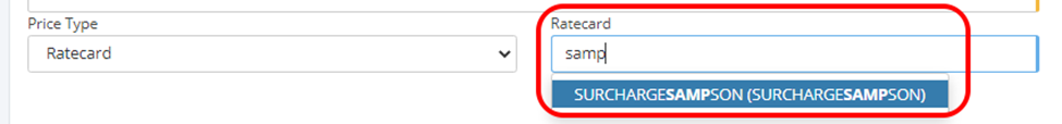 If you select Ratecard then to link the ratecard simply type into the ratecard field and select from the ratecards options that return. To see how to import a ratecard surcharge refer to the article linked here