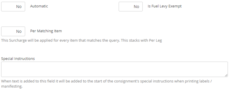 MachShip understands that different surcharges will apply under different conditions. As such there are a series of flags which can be set which will enable you to customise when and how the surcharge is applied.