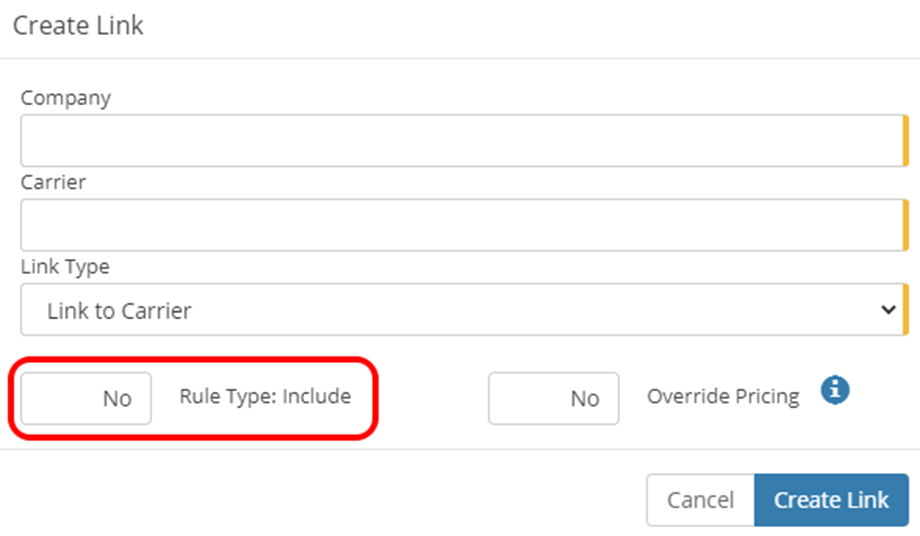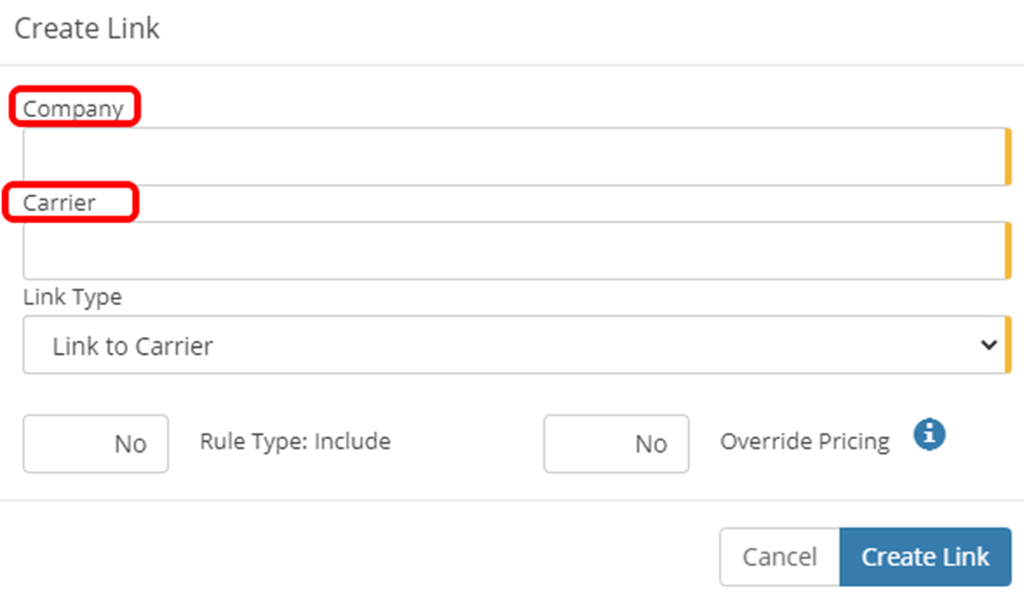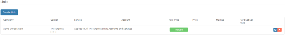 Once the carrier is selected, the default surcharges will be displayed below the link type. This will show the surcharges name and its default pricing.