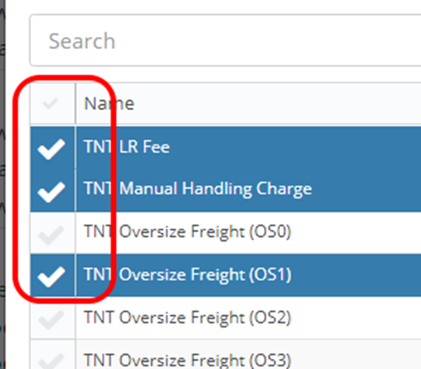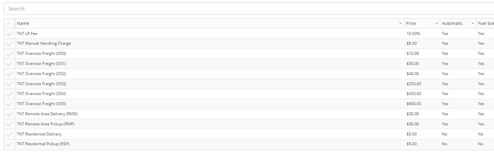 Below is an example of how this will be displayed. There was already a set of surcharges saved against the account which are the TNT Oversize Freight OS0, OS1, OS2, OS3 & OS4 - these will not be added to your company as they already exist.