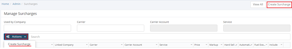 After selecting the surcharges to add, click on Create Standard Surcharge