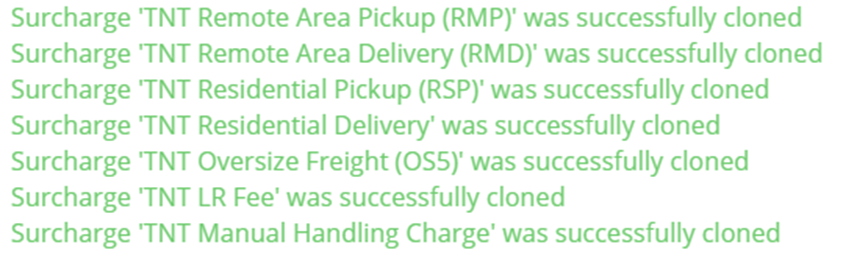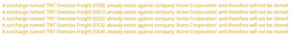 If the surcharge already exists against the company you are adding surcharges to, MachShip will not duplicate the surcharge, instead notify you that it will not be cloned.