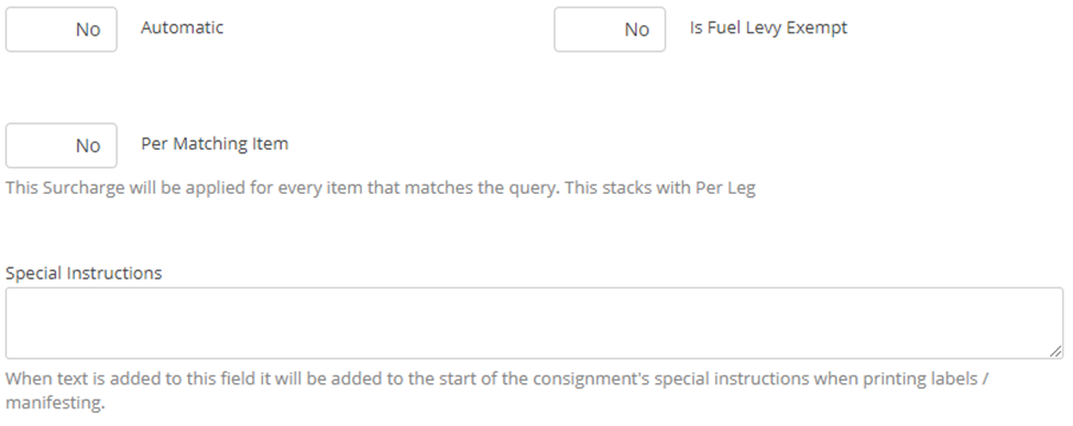 MachShip understands that different surcharges will apply under different conditions. As such there are a series of flags which can be set which will enable you to customise when and how the surcharge is applied.