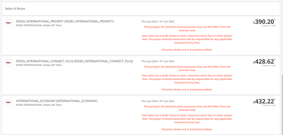 As can be seen above, MachShip will present the price (including Fuel but ex taxes) as well as a delivery timeframe so you may be able to make the best decision for your business.