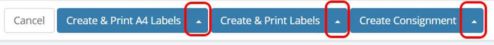 With each of the methods explained above simply clicking the button will cause the consignment to create and for the system to refresh through to the Unmanifested Consignments Page. Should you wish to create multiple consignments then it is suggested that you click the upward facing arrow which sits next to your selected option.