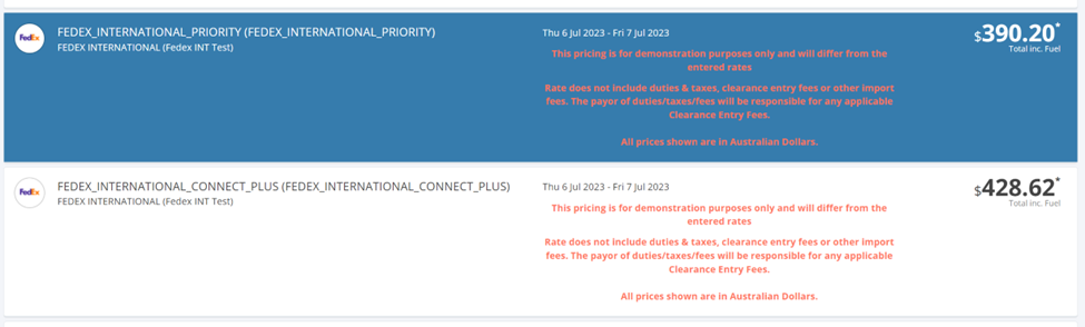 Note: for all International quotes, MachShip will present the price exclusive of any duties, taxes or clearance fees and in AUD.