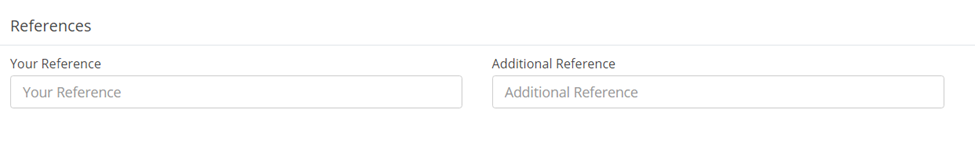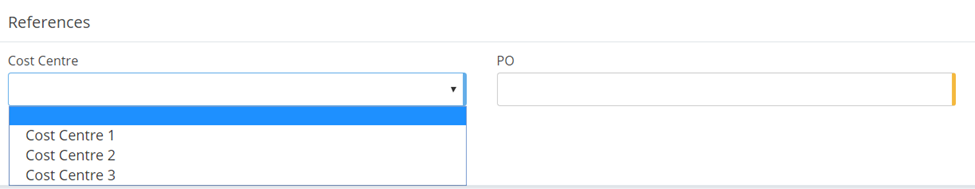 NOTE: Reference fields can be re-named, set to be required and also configured as dropdowns, or a set format. MachShip lets you customise the existing reference fields to match up with your company's own internal references, such as Purchase Orders, Cost Centres or Invoice Numbers via setting up a Custom Field.