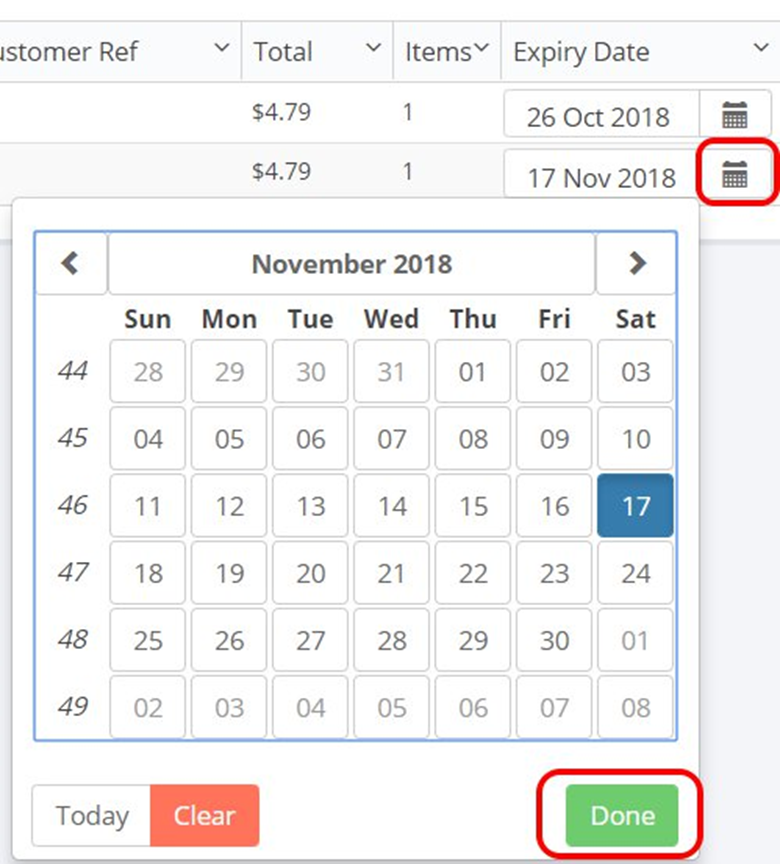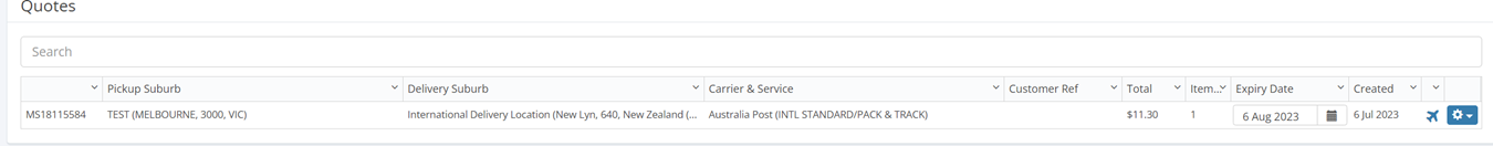 The expiry date is set to be 30 days from the created date but this can be edited by selecting the calendar option and changing the date. Once a quote has expired it will disappear from the grid.
