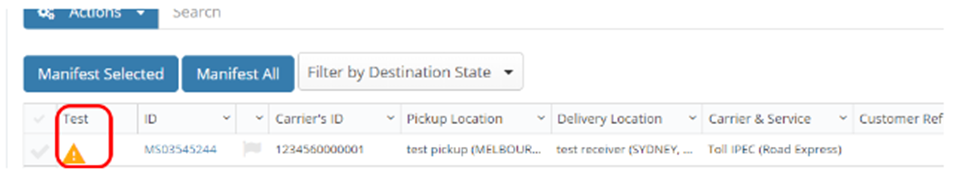 MachShip will highlight if you are creating a consignment on a test account to inform you this will not be a live job, you will not need to cancel any test consignments with the carrier as no data will be sent to the carrier.