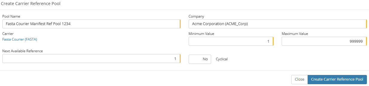 Pool Name - Set as Fasta Courier Manifest Ref Pool <Account Code>