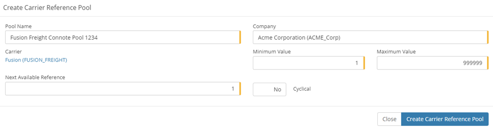 Fusion Freight requires the creation of 2 reference pools, for the Connote number and Manifest number.