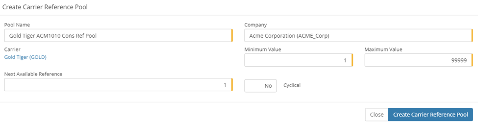 To create the reference pool select the Create Carrier Reference Pool button at the bottom of the page.