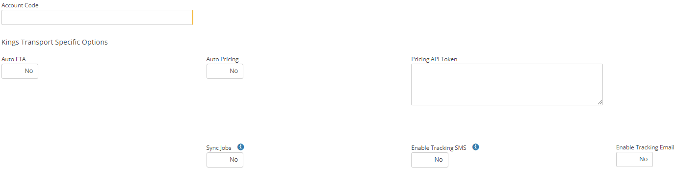 Please note that the Auto ETA and Auto Pricing flags have been set up for a specific account type integration with Kings Transport. If you have not been advised to set these as Yes, please leave them all as No.