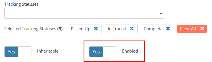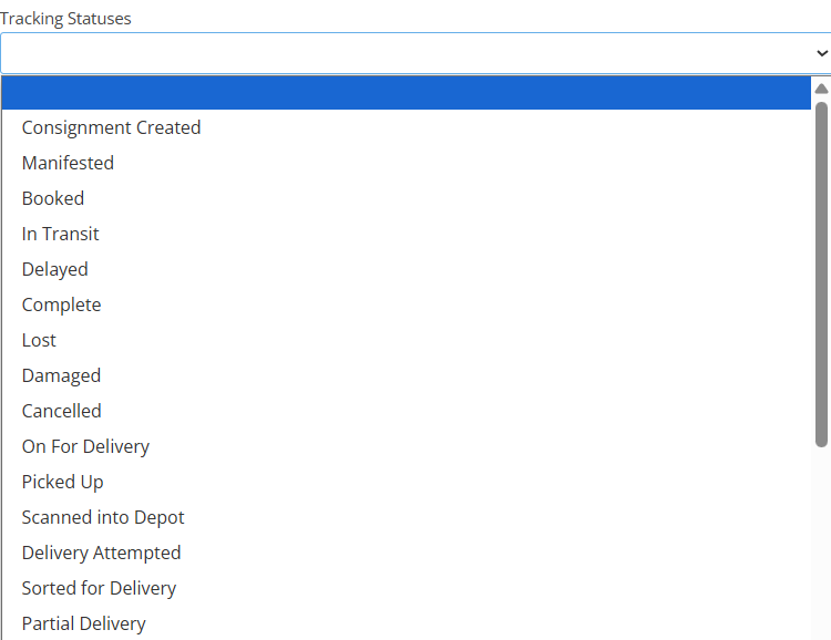 Each email tracking notification will need to be linked to a tracking status - the flagging of this status - either manually or from the carrier will prompt the sending of the email notification. To link a status, select from the drop-down: