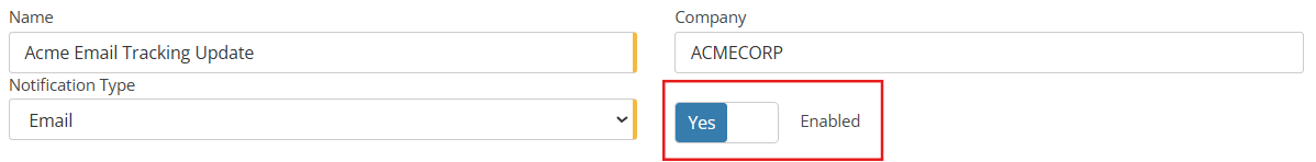 To enable the email notification and set it live, simply select the Enabled Flag to Yes: