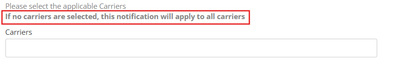 Note if you wish to have this notification flagged for ALL carriers, simply leave the selection field empty