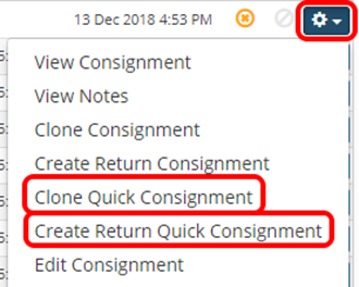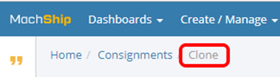Once you have clicked on one of the above options, it will take you back to the Create Consignment screen. Notice at the very top left corner of the screen, the heading would have changed to Clone.