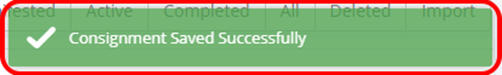 When the consignment has been created successfully you'll get a green Consignment Saved Successfully in the top right corner of the screen.