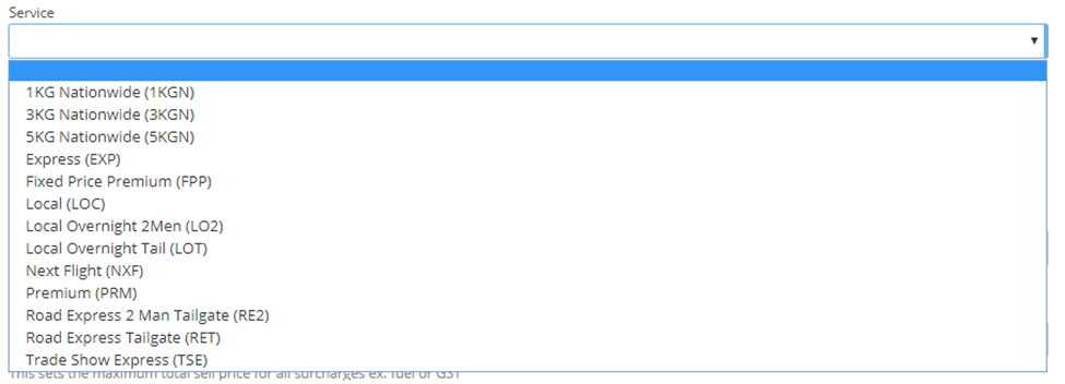 Note: This drop down will show all services applicable to that carrier not just those on the carrier account.