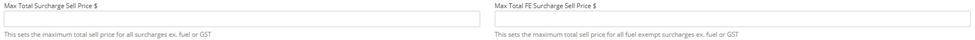 If you wish to set a maximum sell price on the total calculated surcharges or the fuel exempt surcharge figure, then you can create a Max Total Sell Price. This will result in the surcharge sell price not exceeding the figure provided in the input box, no matter the calculated cost amount.