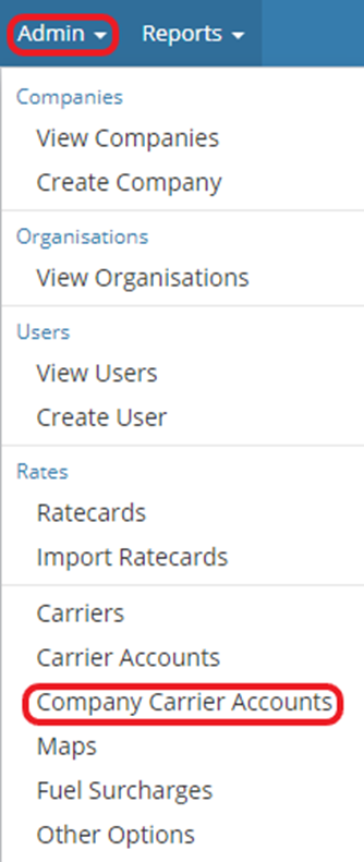 Service Sell Rates can only be added to an existing Company Carrier Account. To do this you will need to navigate through to the Edit Company Carrier Account page.
