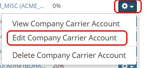 Select the cog on the right-hand side and select the option Edit Company Carrier Account.