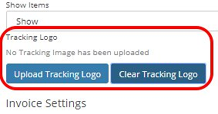 To upload the logo select the Upload Tracking Logo button. This will prompt the Tracking Image Upload modal to appear.