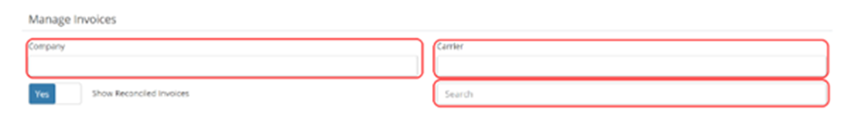 Using either the Company or the Carrier filters or alternatively via the search bar, find and select the desired Carrier Invoice.