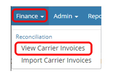 Select Finance and View Carrier Invoices